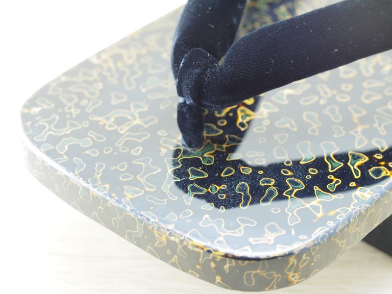 唐塗 男下駄 [G-1] 唐塗 男下駄 [G-1] 販売価格: 22,000円(税込) 在庫なし Tweet 返品特約に関する重要事項 お問い合わせ 足元のお洒落に津軽塗の粋な下駄はいかがでしょう。 大きめに作ってあるので、存在感、迫力とも申し分ないです。 地色の黒に緑と金色の仕掛けを施しています。 サイズ:縦 24cm、横 12.3cm、高さ 5.5cm 材質:桐 職人:加藤慎吾 他の写真 地色の黒に緑と金色の仕掛けを施しています。 鼻緒は黒の無地です。 二本歯の下駄は歩くと「カランコロン」と風流な音がなります。 Facebookコメント 関連商品 紋紗塗 男下駄 唐塗紋様 [G-7] 35,000円(税込) 在庫なし ななこ塗 女下駄 [G-10] 29,800円(税込) 在庫なし